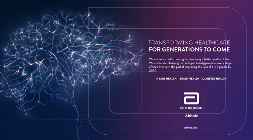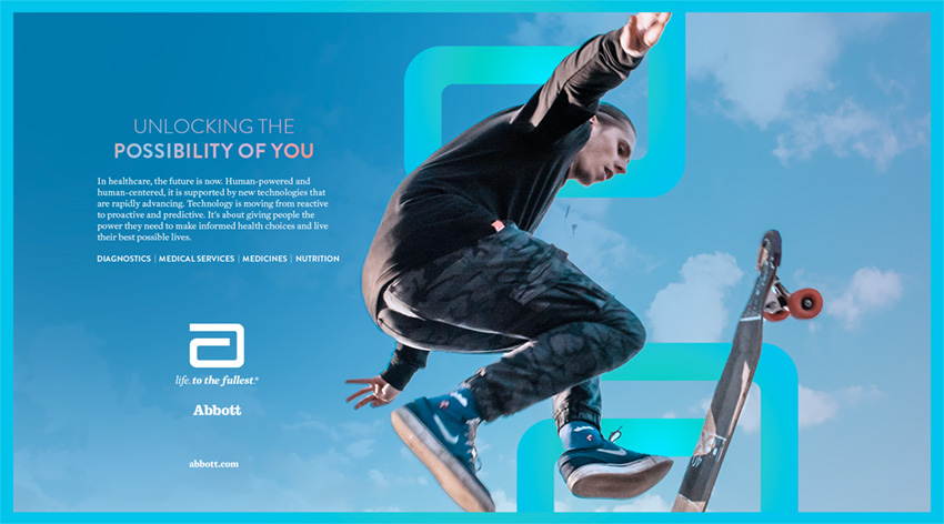 As a leader in healthcare and science, Abbott puts grit, science, and purpose into everything they do. A positive outlook is at the core of Abbott’s success. Whether helping communities around the world or partnering locally, they’re dedicated to making the world a better place. Through multichannel campaigns, benchmarking research, and storytelling, we expanded Abbott’s unified brand in collaboration with the leadership of Global Marketing & External Affairs and their creative teams for both their corporate marketing department (Creative Network) and internal design agency (Brand Creative). The following categories were the focus of our efforts: