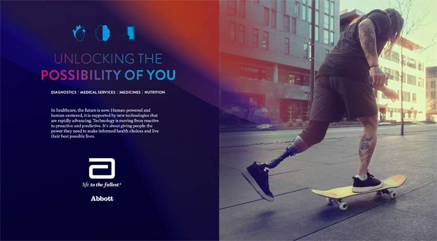 - Position Abbott’s fresh take on healthcare through human centered designs.